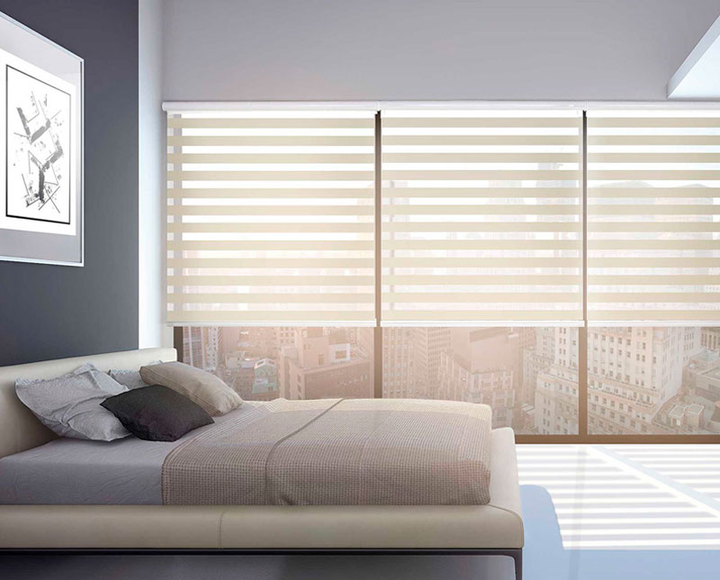 Permite enrollarse parcialmente para dejar pasar la luz, ya que cuenta con telas traslúcidas y opacas que se intercalan a lo largo de la persiana.